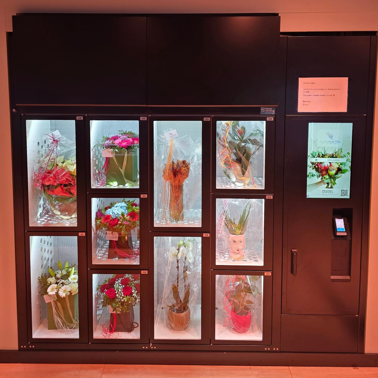 Krijgt u een last-minute uitnodiging of wilt u iemand spontaan verrassen? Met onze bloemenautomaat haalt u 24/7 verse bloemen, zelfs buiten de openingsuren.