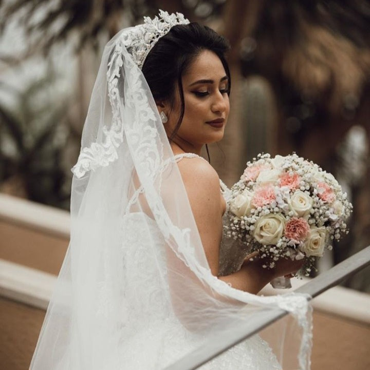 Romantisch bruidsboeket met zachte rozen in pastelkleuren, omgeven door gypsophila voor een luchtige en verfijnde uitstraling. Perfect voor een elegante en romantische bruiloft.